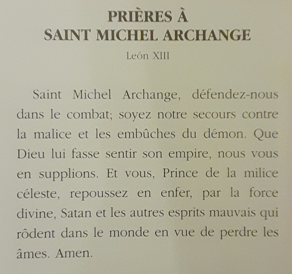Très glorieux Prince ds armées célestes, Saint Michel Archange , défendez-nous dans le combat, contre les principautés et les puissances, contre les chefs de ce monde